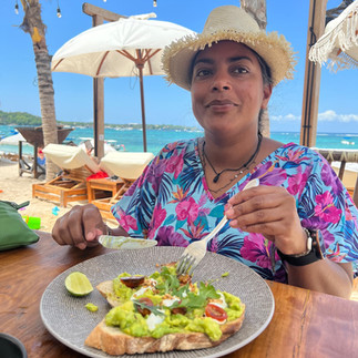 Tempoet var rolig på øya, men ganske mykje meir støy enn på Gili som me nett kom ifrå🙌🏽 Kun scooter, sykkel og noko enkle bilar som ein sitter bakpå under tak. Det var mange restaurantar langs stranda som me åt både frukost, lunsj og middag på. Samt ein del oppi streeten rett bak overnattingsplassen vår. Så me trengte ikkje gå langt for å få oss noko å eta🍴. Tips nederst i innlegget.